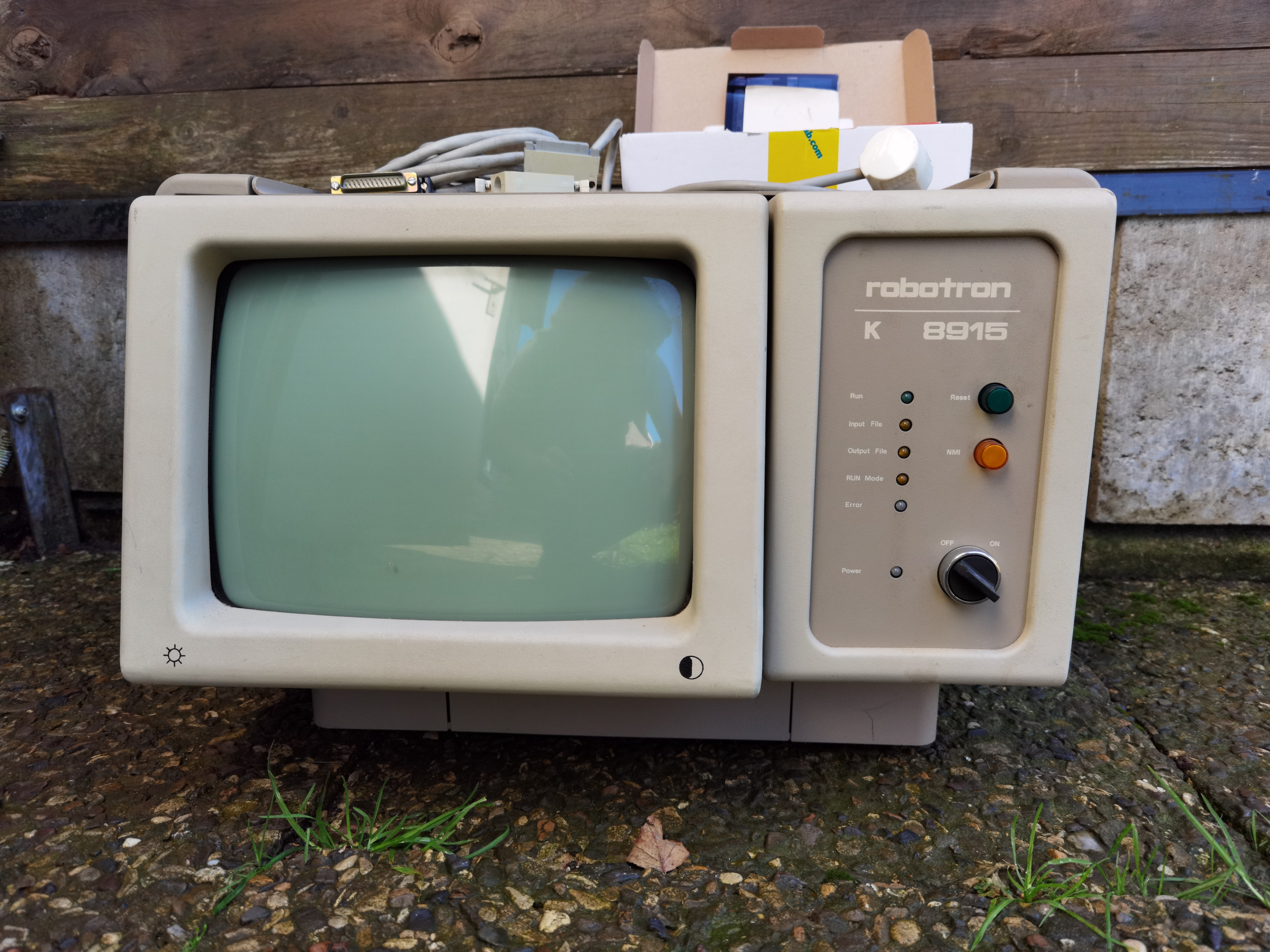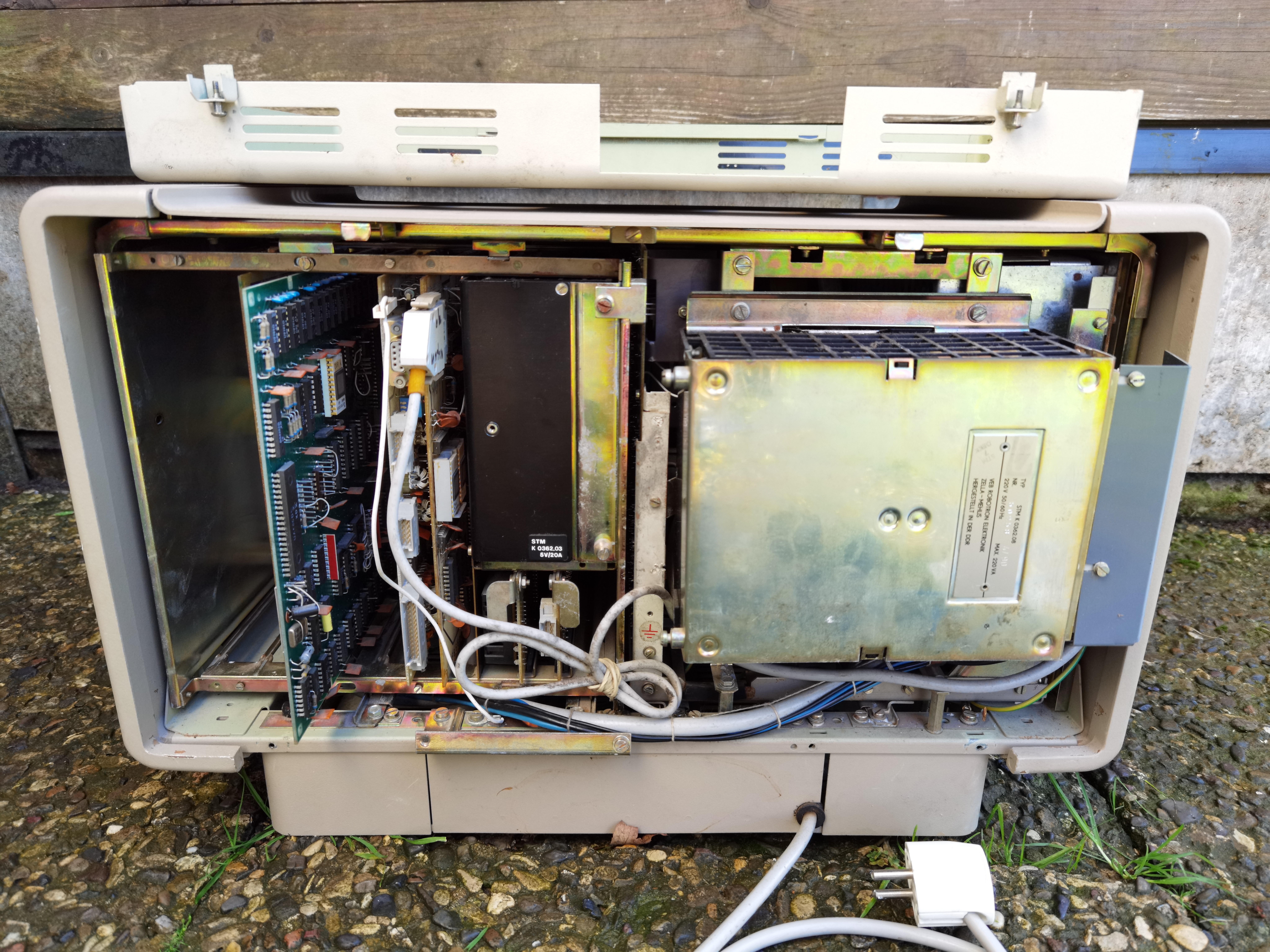 Der Robotron K8915 wurde als Terminal oder als PC hergestellt und angeboten - mein Modell ist die PC Variante mit eingebauten Floppy-Controller K5122. Leider fehlt bei meinem Rechner die Diskettenstation und eine passende Tastatur K7672.
