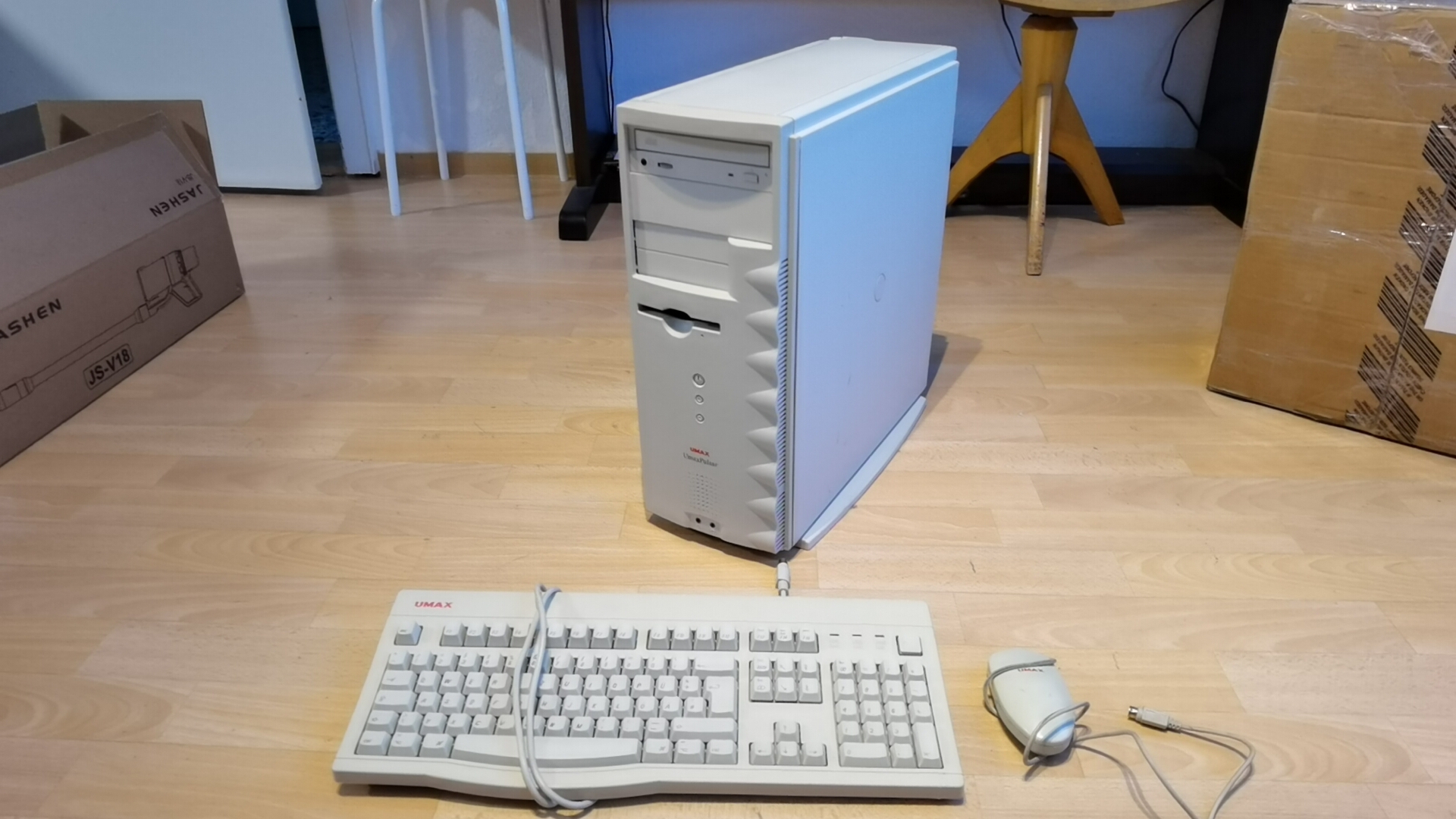 Habe den Gleichen, allerdings mit der Laufwerkstür. Aufgrüstet mit einer G4 / 450 MHz Karte und SATA Laufwerken. Ja das geht, entweder mittels FW Karte mit internem Anschluß oder mit einer dedizierten SATA Karte mit geflaschtem BIOS und einer ATI Radeon 7000. Ich verwende den regelmäßig, da auf meinem ein gutes e-CAD/ESD Programm drauf ist. Auch habe ich die "Düsenjet"-Lüfter getauscht.