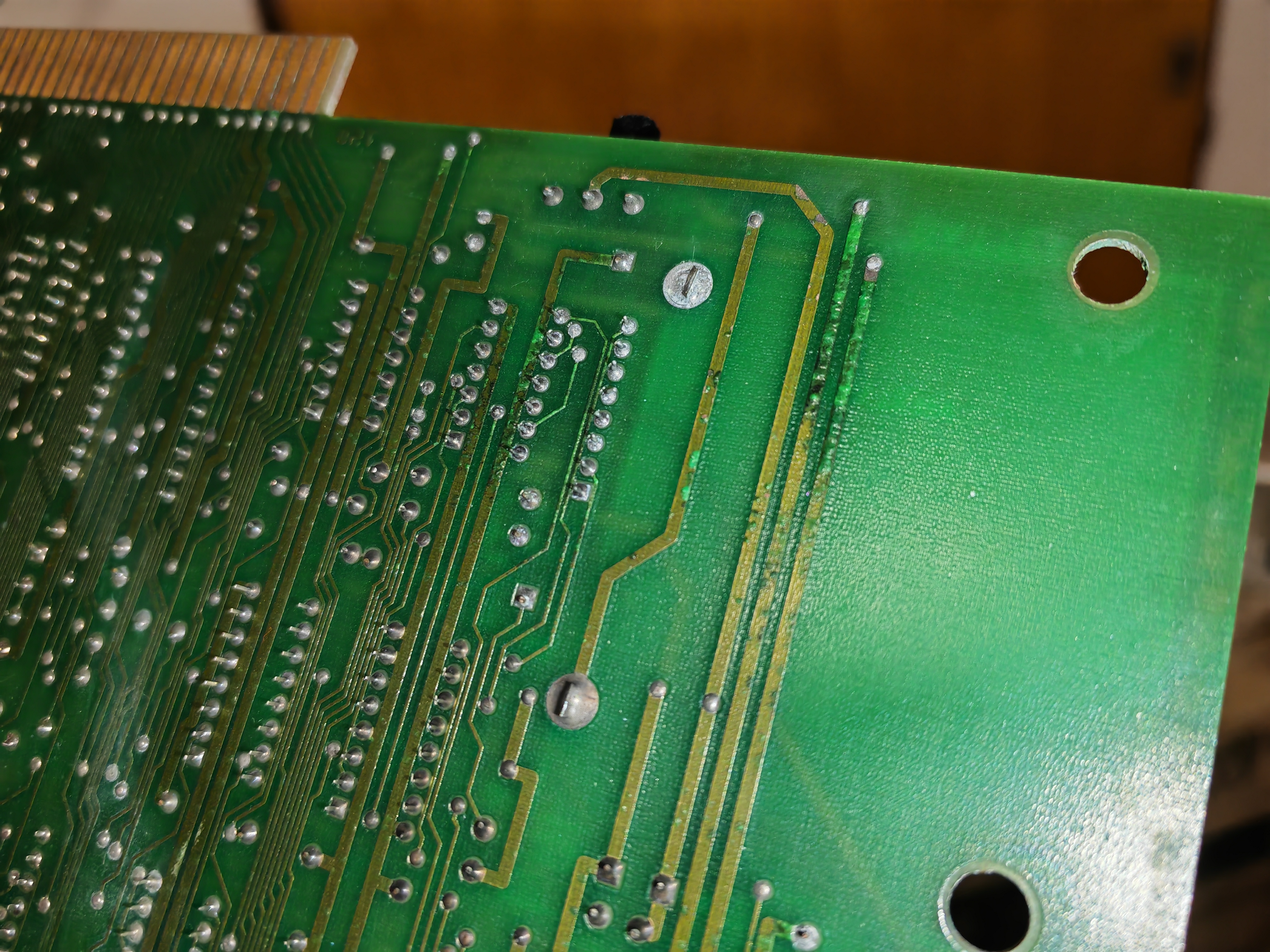 - Prüfung und Reparatur beschädigter (korrodierter) Leiterbahnen auf dem Haupt-Mainboard, dem I/O-Board, CPU-Board und RAM-Boards